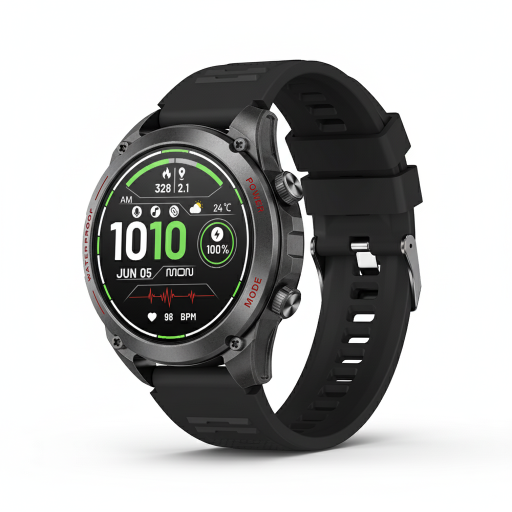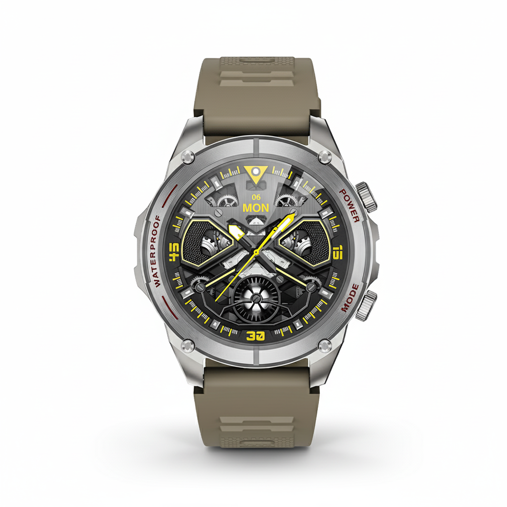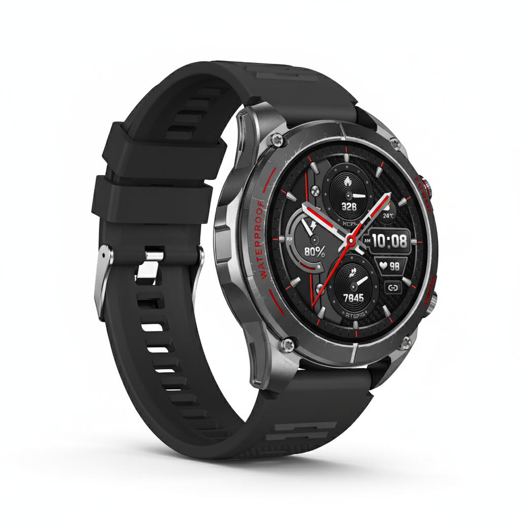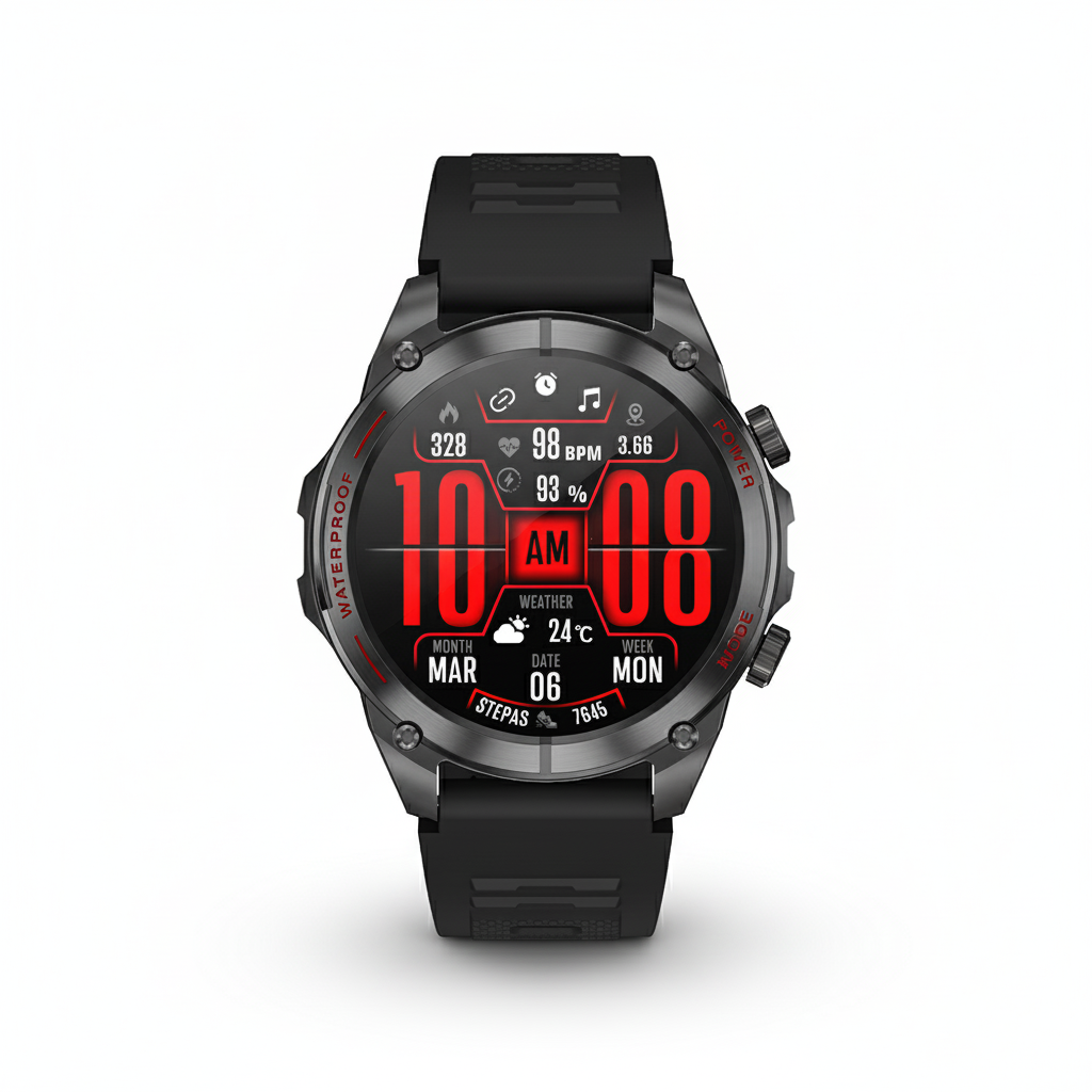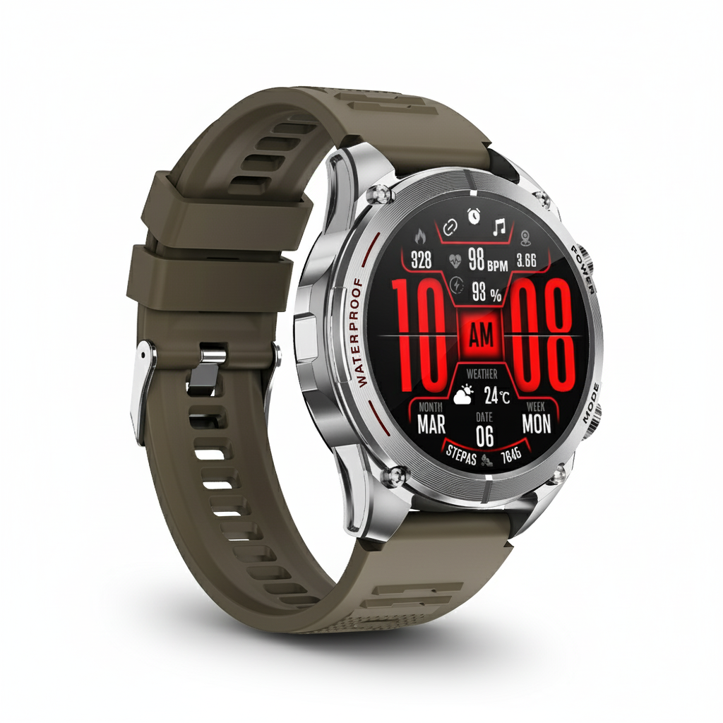 Conquista cualquier terreno con el Smartwatch T90. Diseñado para la aventura con GPS, brújula y altímetro integrados. Resiste el agua hasta 3 ATM y sorpréndete con sus carátulas personalizables. Realiza llamadas y monitorea tu pulso con total libertad. El futuro de la exploración está en tu muñeca.